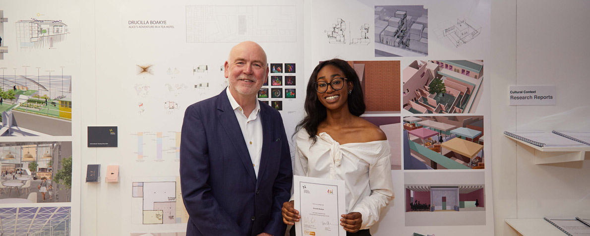 Director Trevor Price recently visited Norwich University of the Arts Architecture Degree Show to award the LSI Architects Drawing Prize 2018 to Drucilla Boakye.