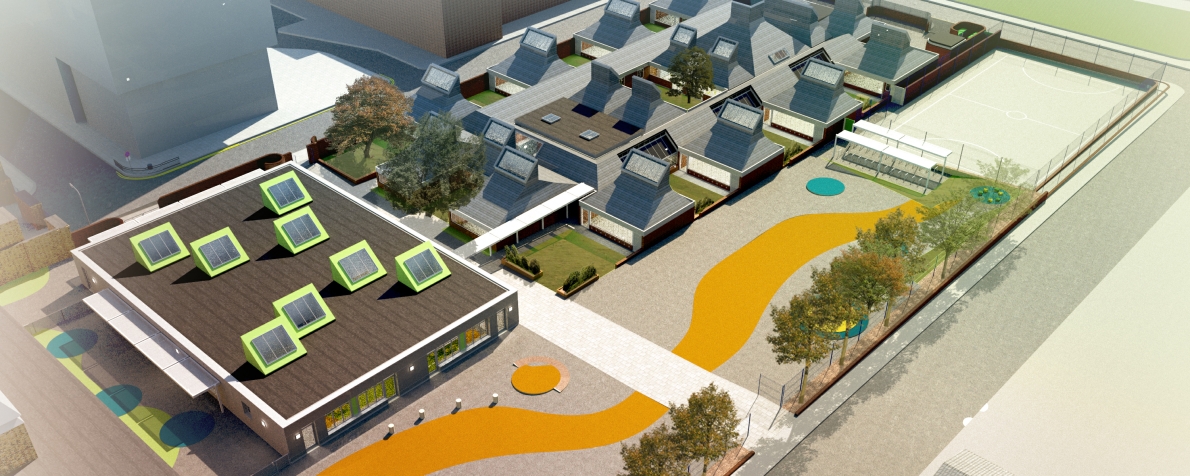 Low energy design solutions have been fundamental drivers for the orientation and layout of the new build early years scheme through the choice of construction materials, the proposed structural and drainage strategy and the way the building is heated and ventilated.